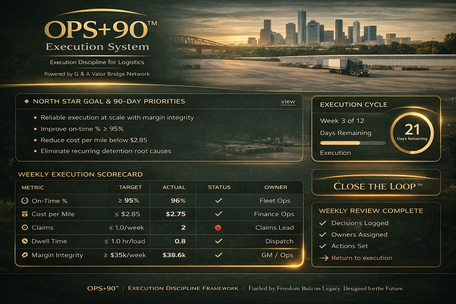 OPS+90 installs a repeatable cadence that keeps your operation inside standards — so you don’t underprice, don’t accept margin-eroding freight, and don’t scale chaos.